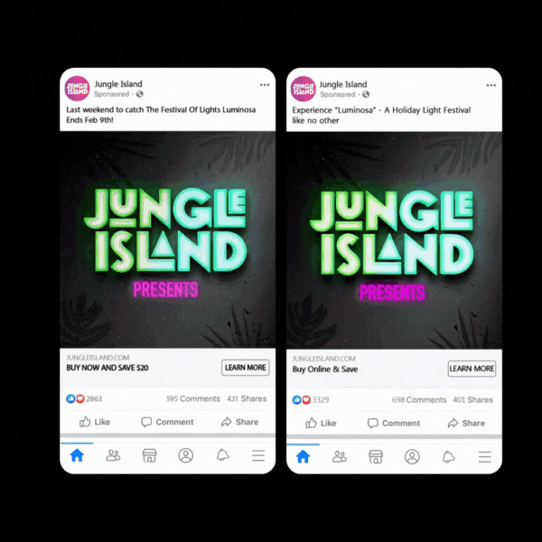 BlackDog Advertising harnessed the potential of Jungle Island’s existing assets, crafting new and captivating creative elements optimized specifically for Facebook and Instagram attraction marketing.